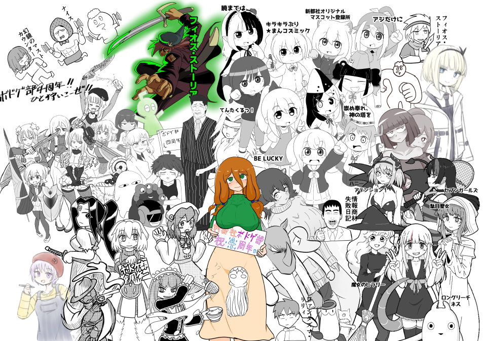 このキャラ数を描き切りつつ一枚に収める構図はすごい画力(パワー)を感じます…。